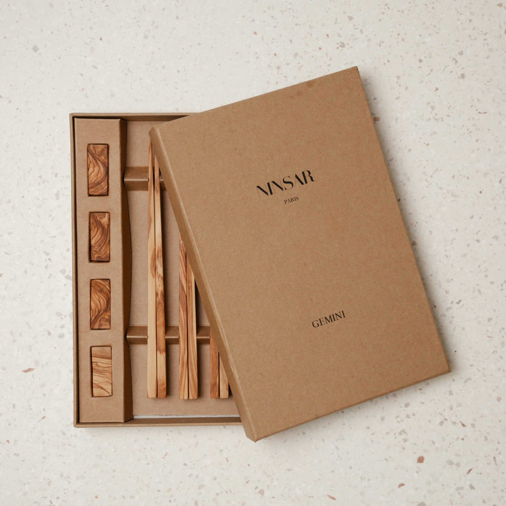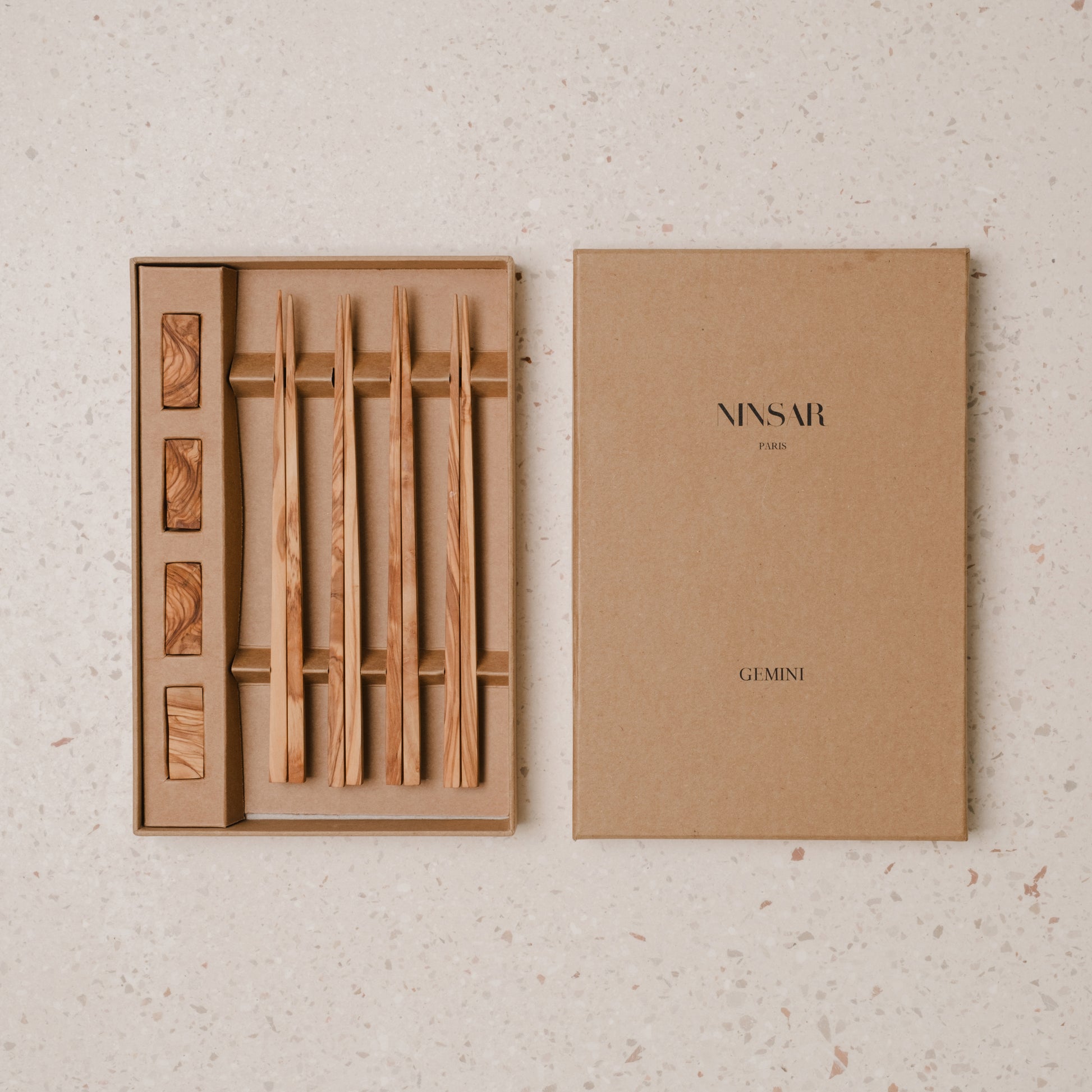 These wooden chopstick take advantage of the antibacterial qualities of olive wood to ensure an healthy food experience. Simply elegant they come with an equally wooden olive support.